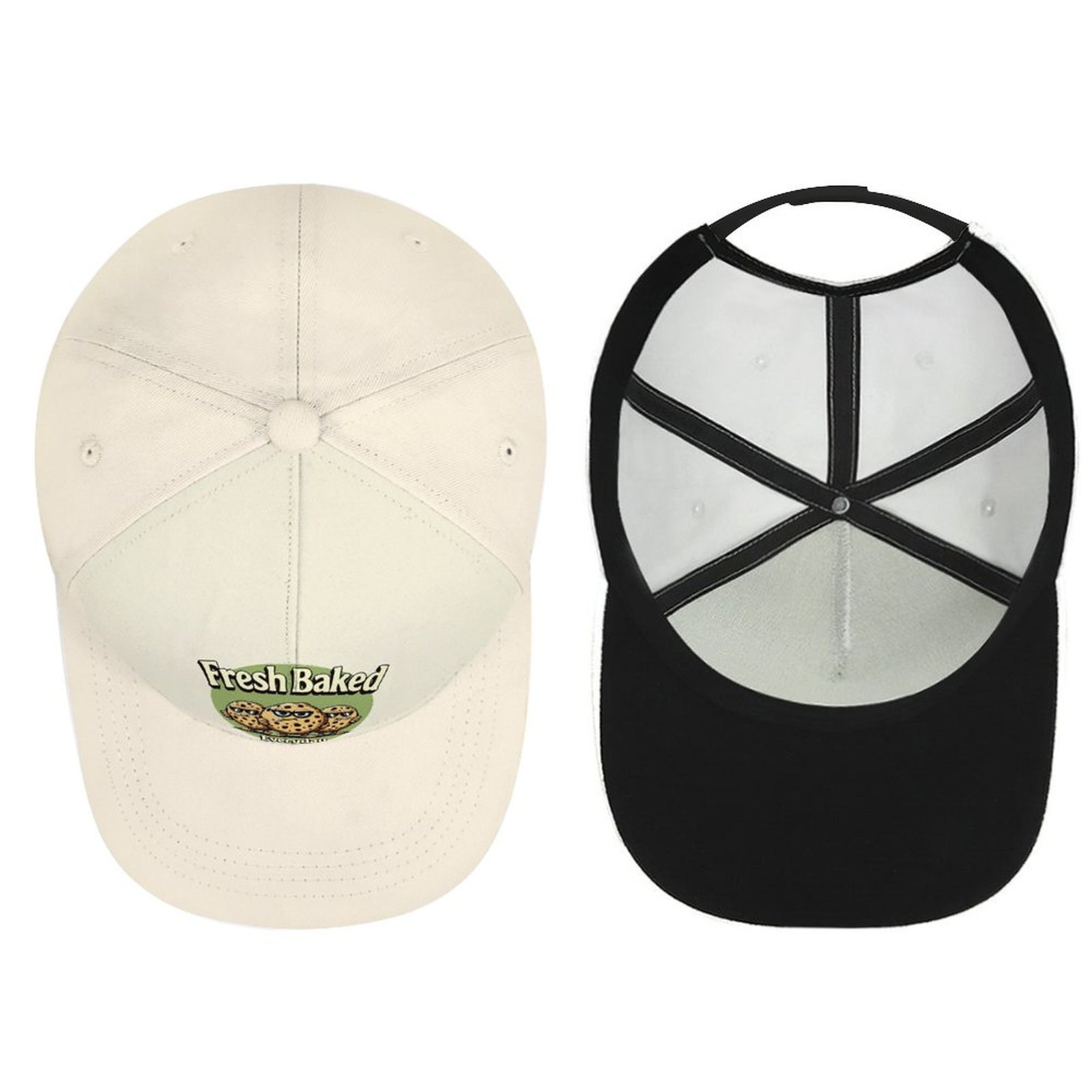 If your customized pattern is dark color, the vent-holes, adjustable buckles and threads on the cap will be black.