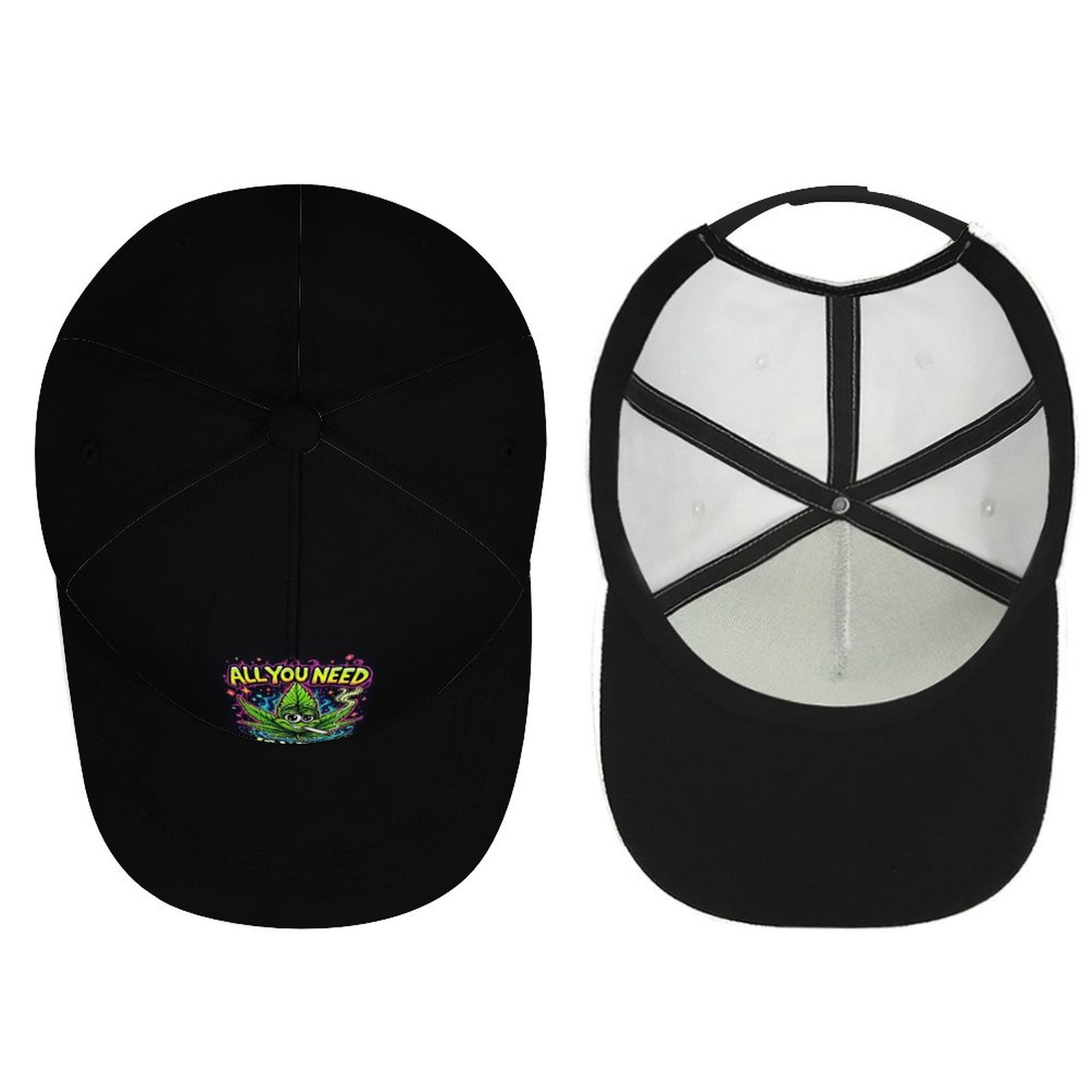 If your customized pattern is dark color, the vent-holes, adjustable buckles and threads on the cap will be black.
